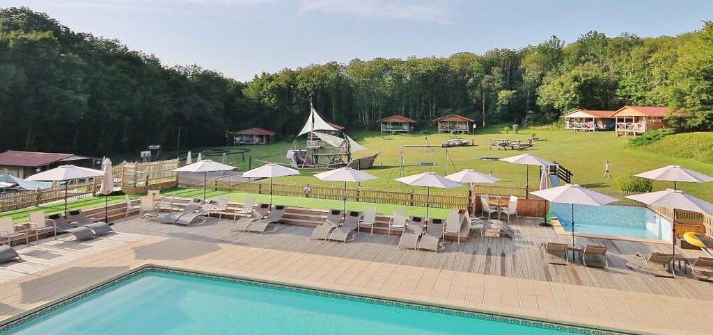 Vanuit elke lodge is een goed overzicht van het park. Je verliest de kinderen nooit uit het zicht.